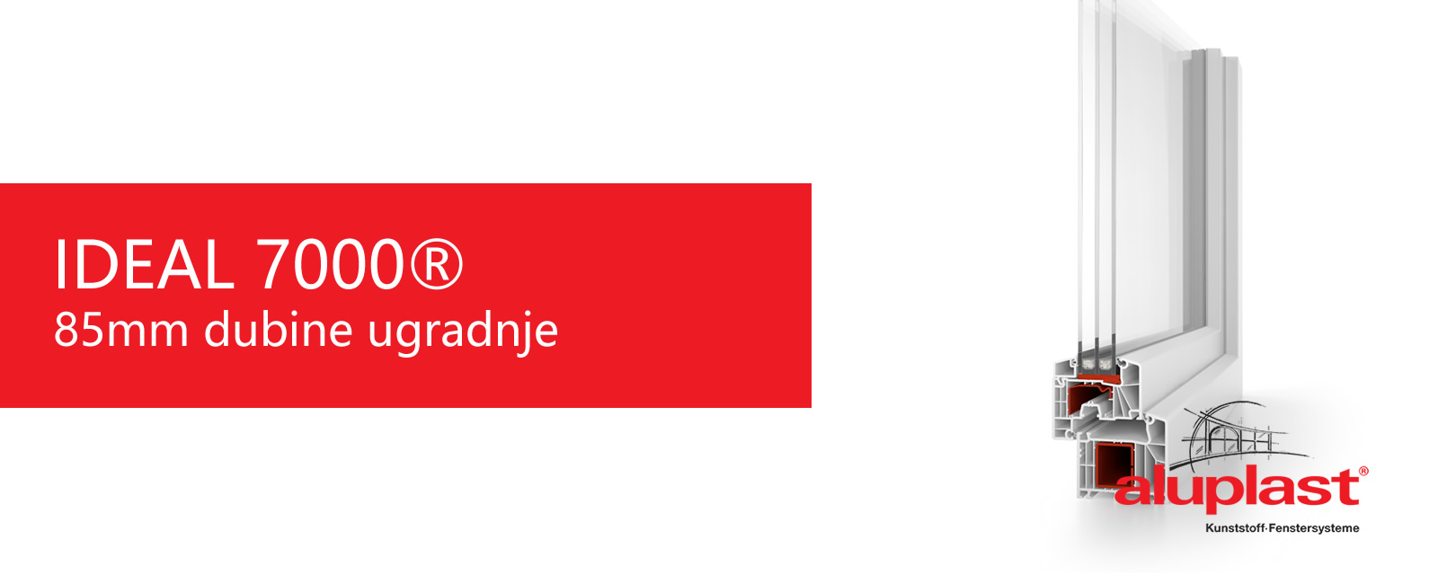 IDEAL 7000® jednostavno je više svijetlosti, sigurnosti i toplinske izolacije. Uži optički izgled profila omogućuje veći prolazak svijetlosti u prostoriju. Profili ojačanja u komorama PVC profila osiguravaju stabilnost kod elemenata velikih dimenzija. Povećana je i protuprovalna zaštita u zoni nalijeganja stakla u krilu. Upravo stapanje prozorskog krila i okvira prozora čine tehnologiju lijepljenja stakla u krilu tako posebnom – izostavljanje metalnog ojačanja u prozorskom krilu, doprinosi poboljšanju toplotne izolacije za 20% u presjeku profila